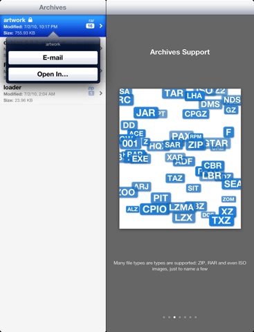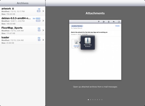 Open up attached archives from e-mail messages, download and open archives directly from Safari.