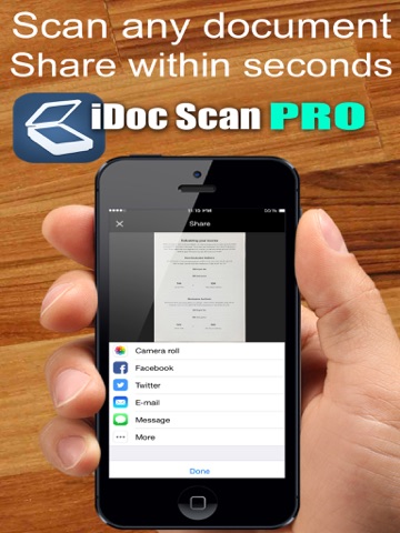 instant scan in a few seconds and then you can save the image to your camera roll or share through mail, message or social media.