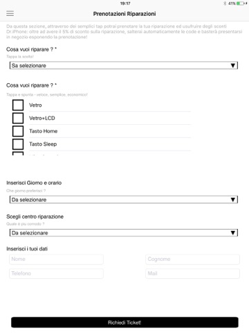Attraverso la iDoctor Tickets potrai richiedere il tuo appuntamento direttamente dal tuo smartphone, selezionando il tuo dispositivo ed il difetto passando avanti alla clientela!