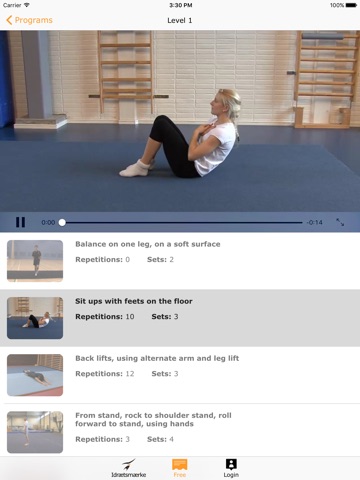 Level divided system. There are five levels of difficulty in most exercises from A-E wherein A is the easiest! This means that everyone can find their level of physical challenge and develop from there. To make it as easy as possible, so there are different groups: feet & legs, abdomen and back, upper body and arms, the entire body, couple exercises, combinations and agility.