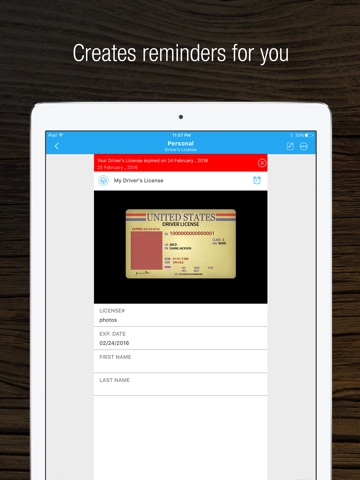 • Smart reminders automatically notify you when certain documents are about to expire.