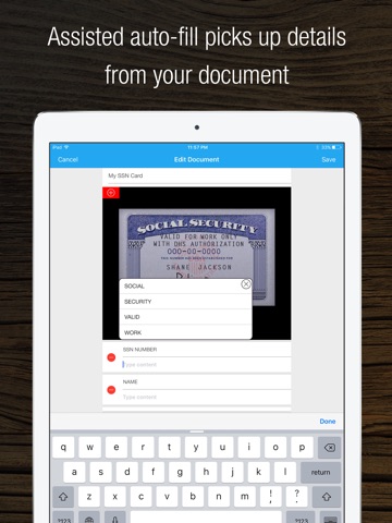 • Smart scanner instantly extracts important details from documents including driver’s licenses, credit cards, and health insurance cards.