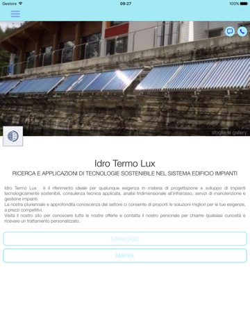 Idro Termo Lux è il riferimento ideale per qualunque esigenza in materia di progettazione e sviluppo di impianti tecnologicamente sostenibili, consulenza tecnica applicata, analisi tridimensionale allinfrarosso, servizi di manutenzione e gestione impianti.