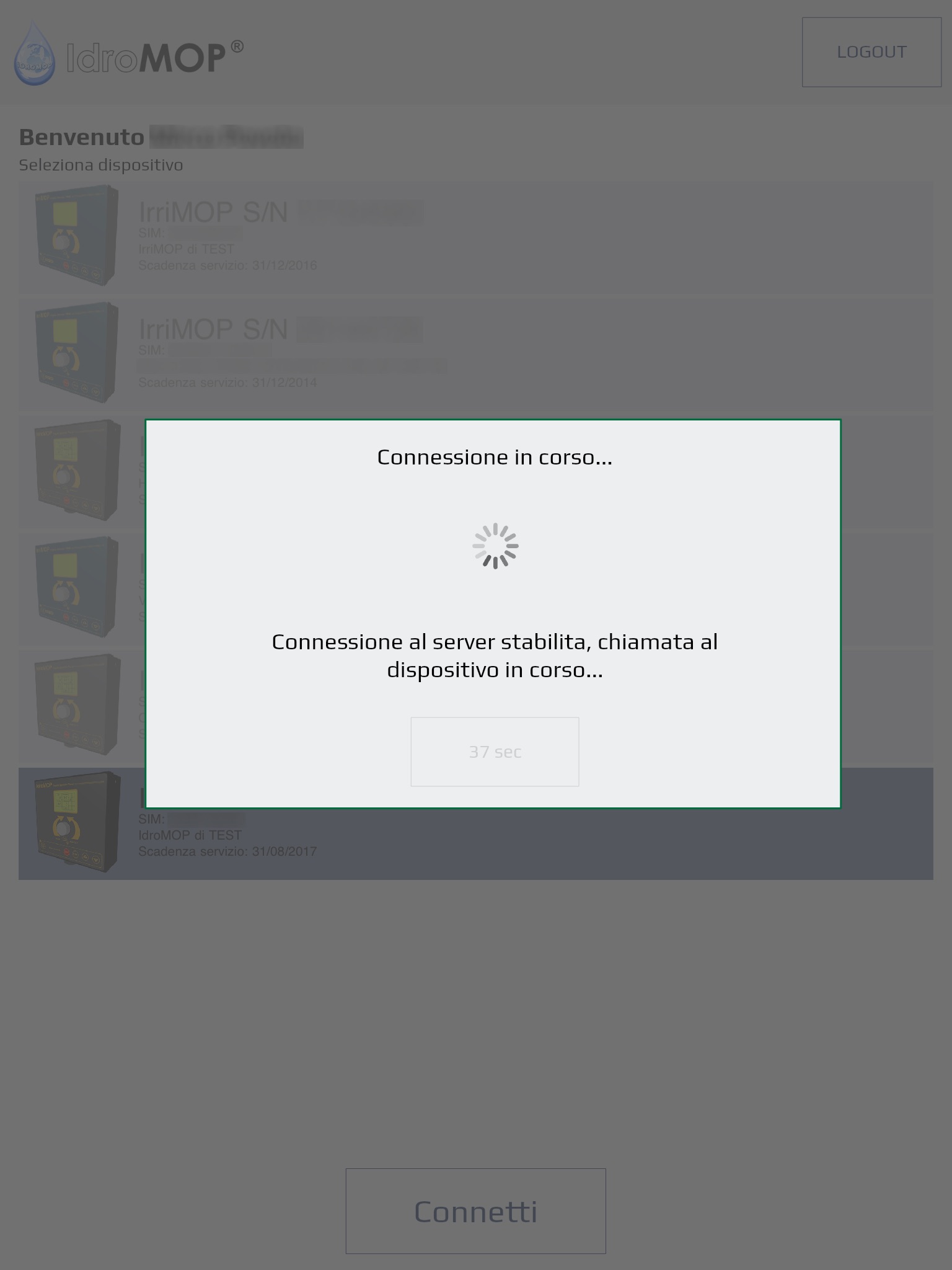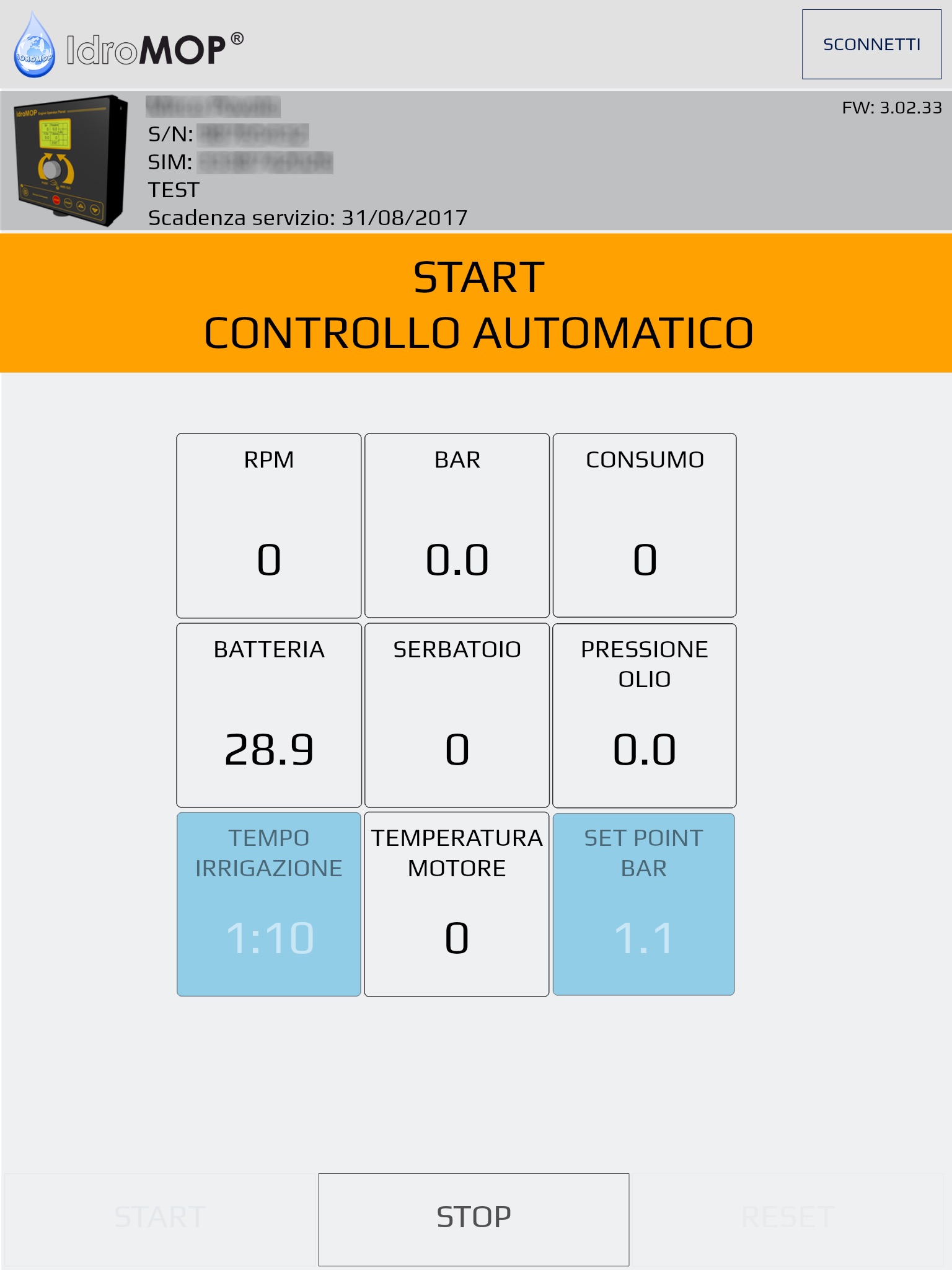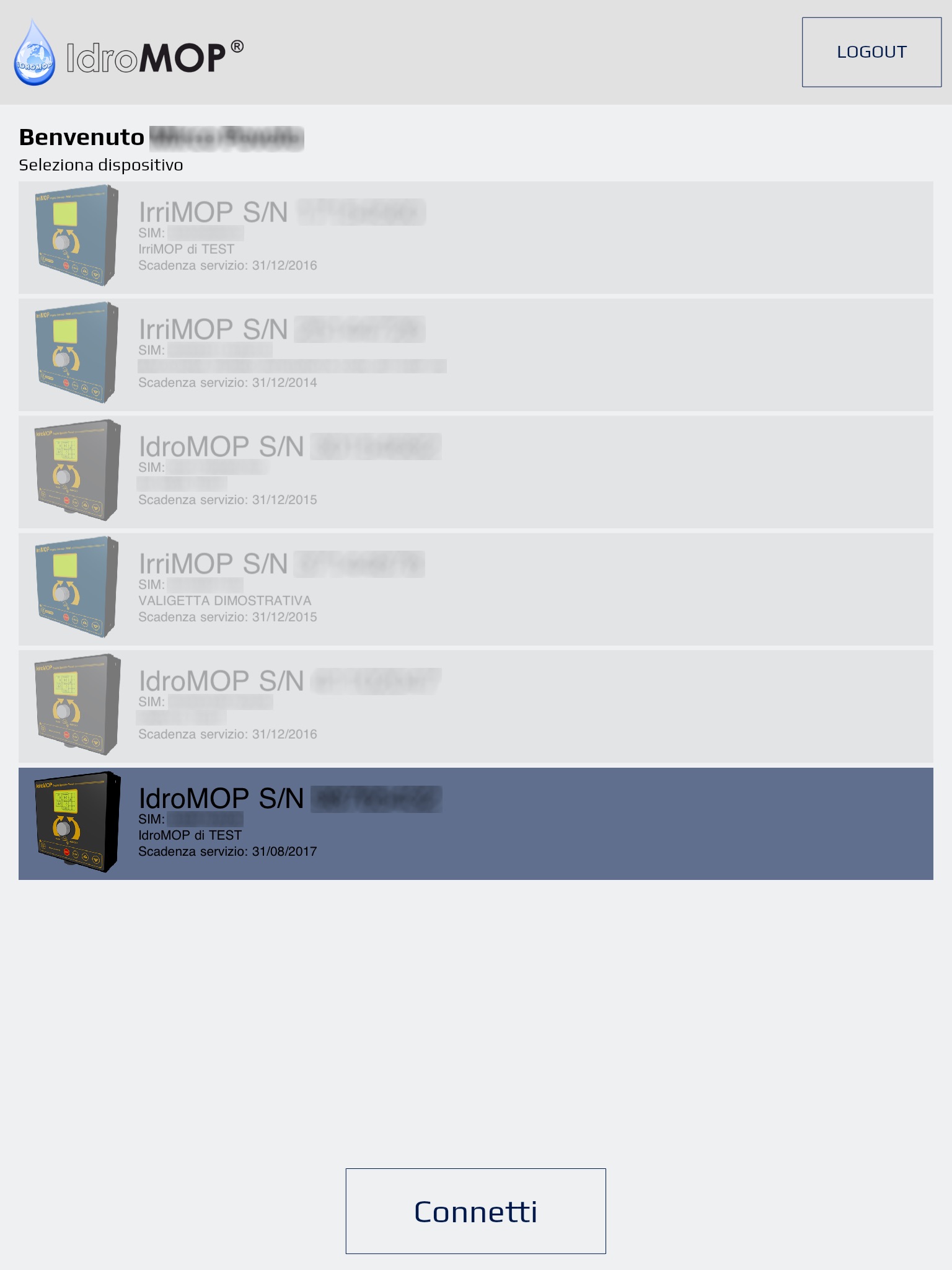 If you enable this service, a section like your IdroMOP/ IrriMOP display will be created; you can see the control panel and this allows you to operate on your device normally in complete transparence and comfortably at your home or office.