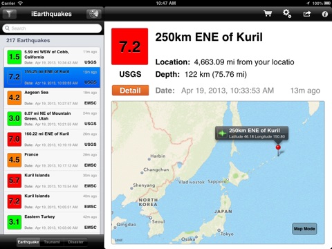 iEarthquakes is App to provide the natural disasters; Earthquake, Tsunami. Stay tuned to latest news with push notification.