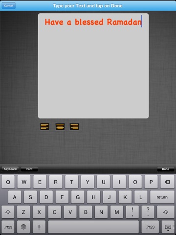 Create your custom Eid Card or Ramadan Card with this App. This app will to customize the card the way you want. You can add Text with all different font and color, change size. Add clip art, move, scale rotate clip art. add your own clipart.
