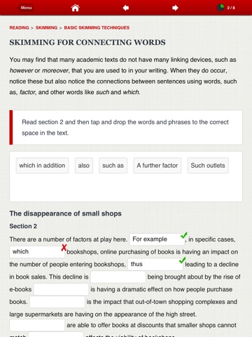 Though this is an highly recommendable app, there are apparent errors in Reading/Answering/Yes, No or Not Given Questions/The Language used in Claims. While the app shows as answers B (a cause and effect relationship) and A (a comparison) to question 3 and 4 respectively, the correct answers are clearly inverse; A to Q. 3 and B to 4. I hope the developer will update the app and correct the errors as soon as possible.