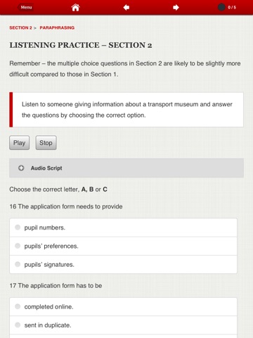 ► Practise answering a full range of question types that you can expect to find in the listening section of the IELTS exam.