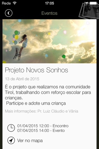 • Saber detalhes sobre os eventos (descrição, hora, localização)