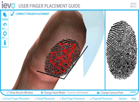 This app demonstrates the correct finger placement procedure and shows the output from the iEvo device as part of a fully interactive 3D application, developed by Spearhead Interactive.