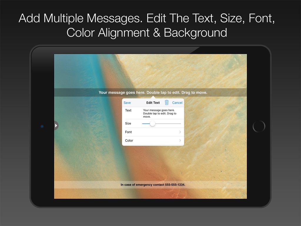 The If Found Lock Screen app for the iPhone, iPad, and iPod touch allows you to add messages to your Lock Screen wallpaper. Most people use it to add their contact information to the Lock Screen, so that if their iOS device is ever lost, whoever finds it can easily get in touch with them. This is a new app which replaces our popular original If Found Lock Screen app.