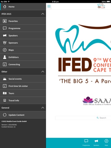 The IFED 2015 App is the official app for the 9th World Congress for the International Federation of Esthetic Dentistry. IFED 2015 will be held in Cape Town, South Africa, from the 5th to the 7th of November 2015.