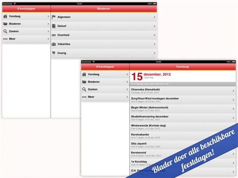 • Handige zoekfunctie, vind direct de datum waar je naar opzoek bent. Zoek zowel op naam als omschrijving als maand.