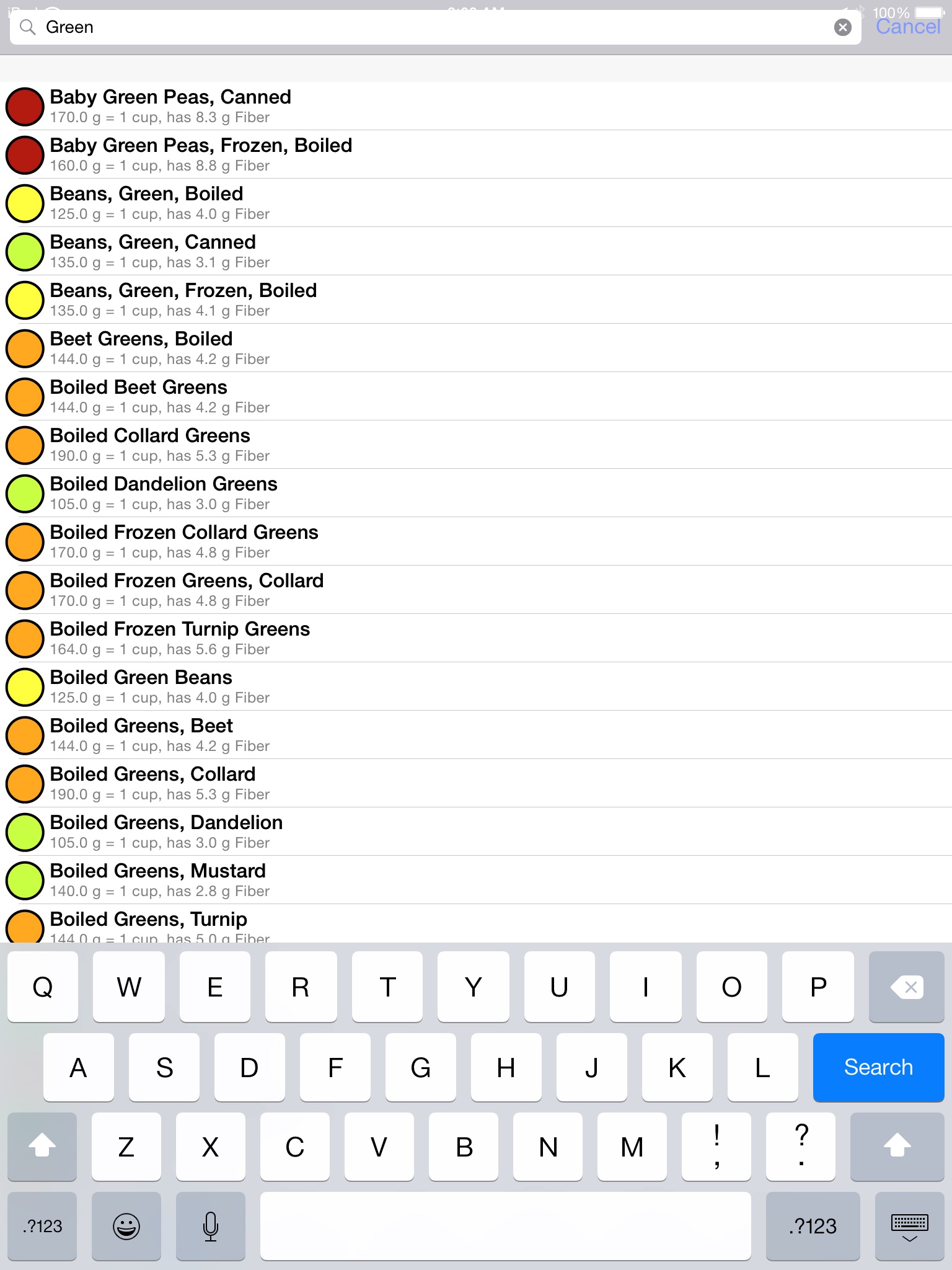 The iFiber app provides information about foods and how they are rated for content of fiber. This is provided as a means to assist in deciding which foods to eat. The food servings are rated from EXTREMELY LOW in fiber all the way up to EXTREMELY HIGH. The following colors help readily identify which is which: