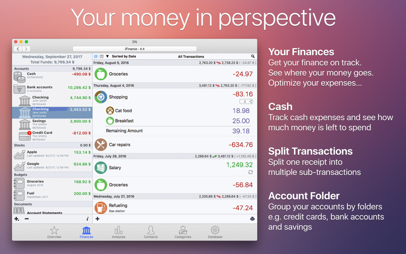 Beaucoup de changements dans la version 4, dont une interface utilisateur entièrement revue, mais toujours la même convivialité et la même performance. L’application est tellement intuitive que le mode d’emploi (fourni en Français) ne sert qu’à découvrir les fonctions que l’on ne connaissait pas encore. iFinance 4 est un incontournable pour toute personne souhaitant gérer ses comptes personnels sans prise de tête, tout comme la vesion 3 l’était aussi. Le rapport performance/prix est excellent. En outre, l’appli est considérablement « allégée » : 71Mo au lieu de 130, mais aussi nettement moins gourmande en ressources. Une réussite.