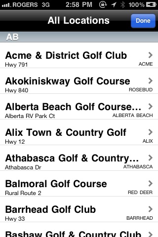 iFIND – Canadian Golf Course Finder (Lite Edition) shows you the nearest three Canadian Golf Courses to your location.