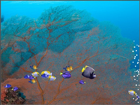 Play with a school of fish! Or just relax and watch them wander about as you listen to the soothing sound of ocean bubbles.