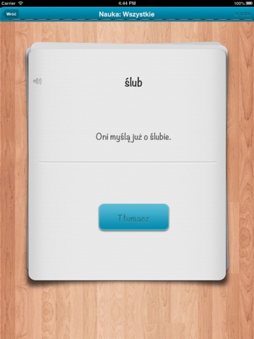 Aplikacja bardzo wygodna i przydatna. Czytelnie pokazuje postepy w nauce, jedyne czego mi brakuje to mozliwosc odsluchania calych zdan (z przykladem uzycia slowa). Edit Niestety musze zweryfikowac swoja opinie. Aplikacja jest niestabilna, bywa ze trzeba probowac kilka razy, aby ja uruchomic. Od kilku dni nie uruchamia sie wcale (czarny ekran przez kilka sekund po wlaczeniu i powrot do ekranu glownego). Niestety psuje to cale wrazenie i rujnuje idee aplikacji, ktora mozemy uruchomuczawsze u wszedzie aby uzyc sie nowych slowek.