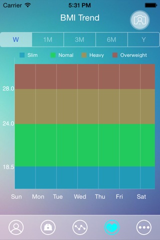 • Personalized Weight and BMI records with trended charts feature.