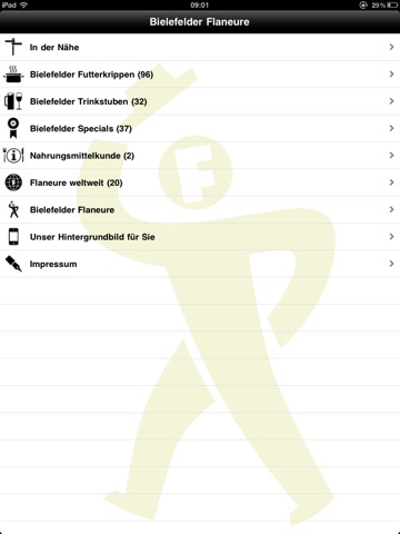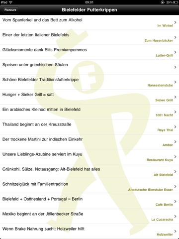 Wissensquelle sind die Bielefelder Flaneure, deren Aktionsradius mitunter über Bielefeld hinaus geht. So finden sich auch nützliche Prüfberichte aus New York City, Steinhagen, Oerlinghausen, Nordholland oder Mallorca.