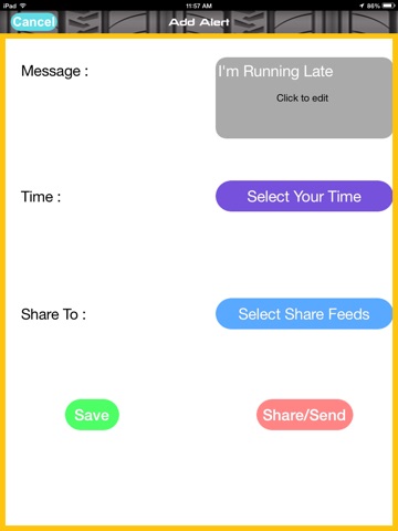 5) iFlipAlerts is a fast means to alert others custom or canned messages such as "Im running late" to be sent via Facebook, Twitter, email or SMS to friends.