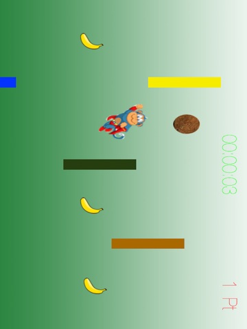 Flying monkey is a simple and fun game to play with, the monkey has to move between the falling colored bars without hitting them, while moving it is better for your score to catch the falling bananas, each banana caught improves your score 5 seconds, avoid collision with coconut to keep playing.