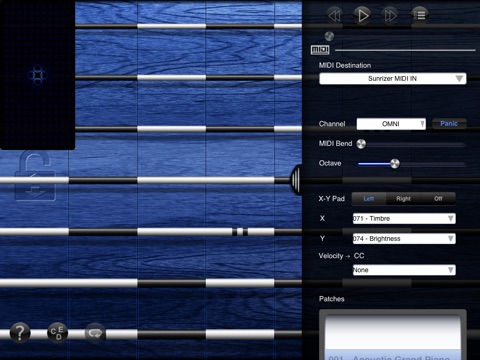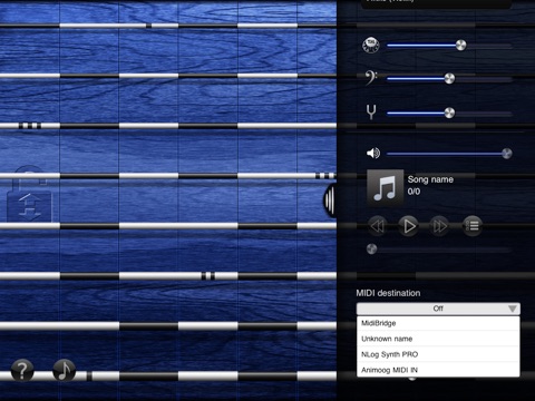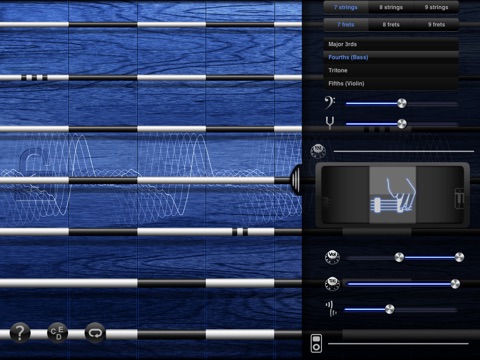 Plusieurs sons intégrés et différents layout en fonction, synthé de cordes avec surface de jeu reprenant le visuel dune basse. Les plus: onde sonore représentée à lécran pendant le jeu et possibilité de contrôle MIDI. Il offre la possibilité de jouer pardessus un son de sa bibliothèque iTunes. Les moins: pas de métronome et les sons intégrés moyens