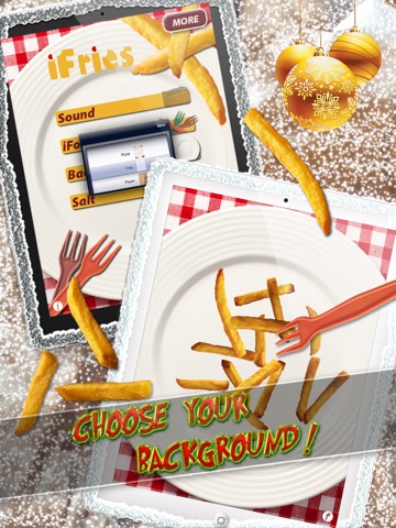 Choose your scene between a plate, fries cup, paper tray or use your iPhone background or any picture from your camera roll!