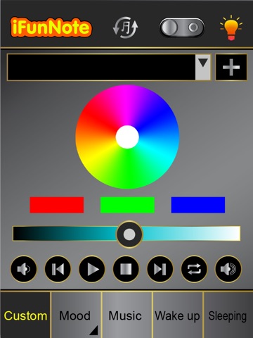 1. Custom Mode: To select the color and brightness of user interface by clicking on the color panel and sliding the brightness bar on the screen, to make fun by yourself!!