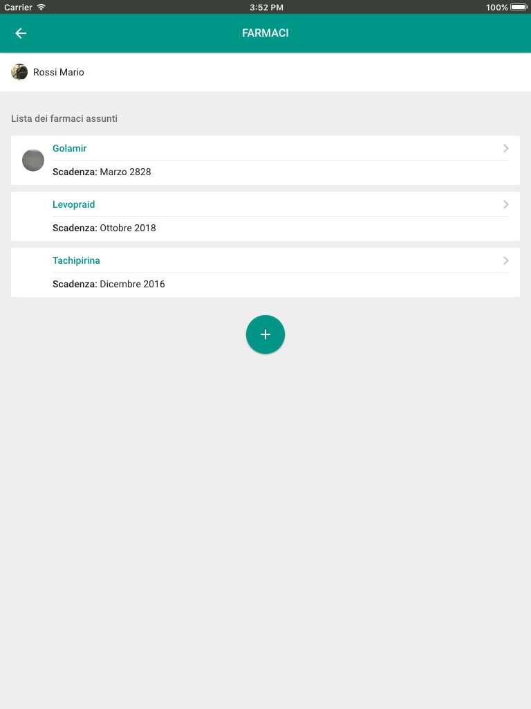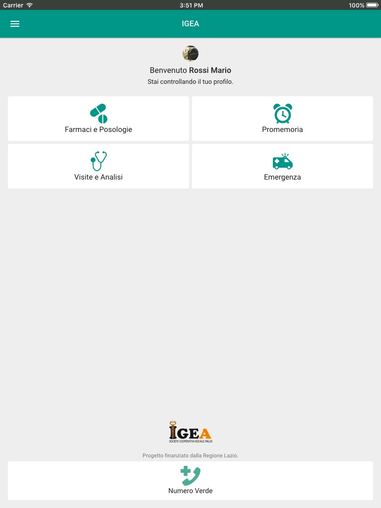 - remind per l’assunzione quotidiana della terapia ordinaria, settato su tempi, modalità e posologie;