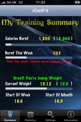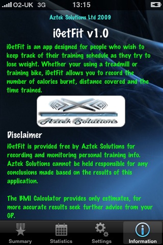 iGetFit is designed for people who want to keep track of their training schedule as they try to lose weight. Whether your using a treadmill or training bike, iGetFit allows you to record the number of calories burnt, distance covered and the time trained. Using this information iGetFit allows you to see how many calories are being burned per minute during training session, which you can then use to compare with your other training sessions and monitor how well you are training.