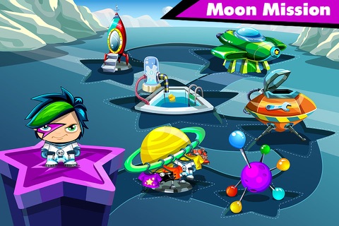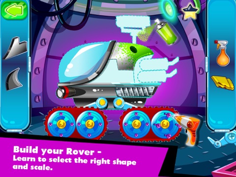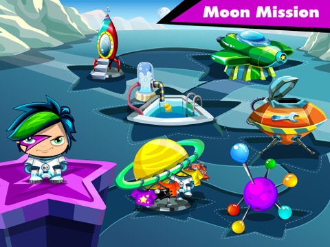 Help him build a rover , practice in the Astronaut’s Pool , taste a space meal, and learn to operate his space ship on his way to the Moon.