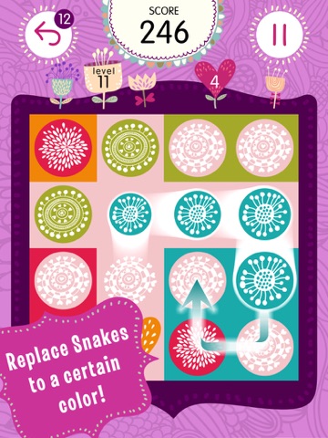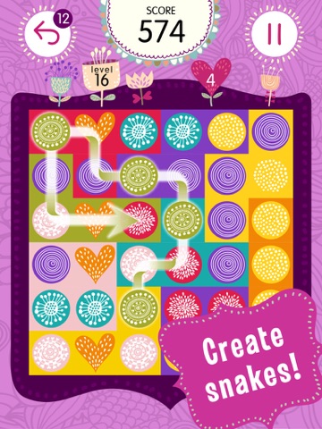 Connect hearts and fluffy bubbles to create snakes. Replace all snakes to a certain color, cover the entire board to solve each puzzle. But watch out, each connected object will make the snake longer, so maneuvering will become progressively harder.