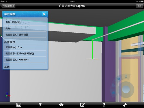 三维浏览:通过构件树显示、构件过滤、切面等功能方便用户进行模型三维浏览。