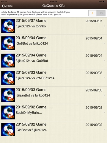 *Users can save some information such as opponents name, game date, title, result and Kifu(SGF data).