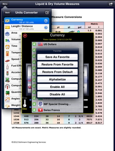 You can easily disable units & charts you dont need and put them in whatever order best suits you, then save it as a favorite and quickly switch between your favorites and the app defaults. There is also a powerful search feature to simplify locating a unit of interest, regardless of category.