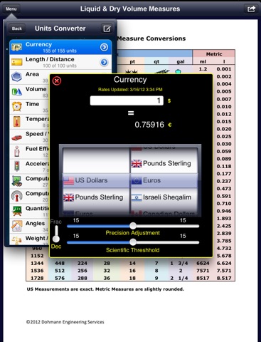 ConvertCalc is ideal for use in the kitchen as well as for engineering, surveying & scientific applications and anything in-between. Our conversion factors are consistent with NIST publications as well as other standards agencies and organizations such as API, BIPM, IAU, IEEE, IEC, etc. Every unit is defined & described. Whimsical units & systems such as smoots, FFF (furlong-firkin-fortnight) units and the Potrzebie System of units are also included for academic usage.