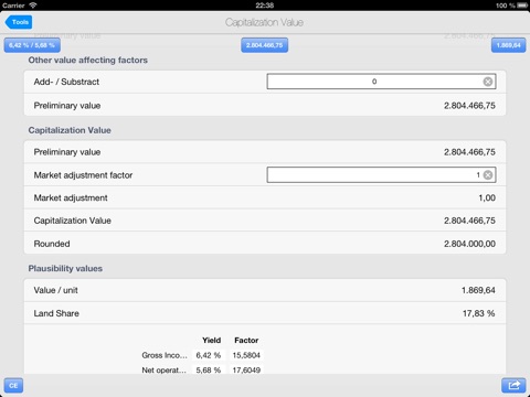 Our in-house Real Estate Valuation Tool targeted towards the German Capitalization Method, designed for the legal framework of ImmoWertV and streamlined for on the road Due Diligence use.