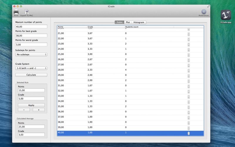 - By telling iGrade how many students have achieved how many points it can calculate the overall average grade.