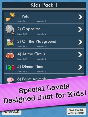 Do you have kids? iHeart Word Puzzles also includes a special section of puzzles just for kids.