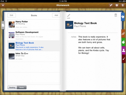 Your list of books is a great place to keep notes about your text books (like how expensive they are) and the author.
