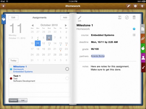 Keep track of your work on iHomeworks built-in color coded calendar.