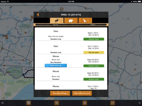This is a great little app - does exactly what it says. Im told that the only thing missing (Migratory Bird Regs) will be added shortly, in time for opening season 2013. Nice to see a Canadian company making Canadian apps that de-mystify some of the cumbersome Ontario hunting regulations. This is something the Ministry of Natural Resources should have done a long time ago so props to these guys for taking it on themselves! Well worth the investment.