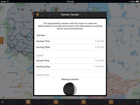 This is a great app there are two reasons why I gave it 4 stars because the pro version for 10 bucks really doesnt give you much to make it worth it, and I dont like that they dont give you the option to buy the full version without buying the light version first and it would be nice if they over lap the sunday hunting map with where you are in real time. Other then this I think its about time us hunters have something to reference to great job