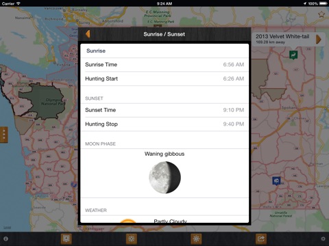iHunter Washington gives hunters and outdoor enthusiasts a new view into Washingtons game management units. By overlaying the GMUs on top of the built in iOS maps, users can see their current location and which GMU they are in. Dive deeper into specific GMUs to see which big game, predator, and game bird seasons are open. Contribute to the map by adding your own waypoints to keep track of hunting spots, past animal harvests, and landowner contact information.