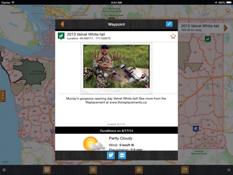 - Share waypoints via Twitter and email to friends and hunting partners (requires internet to share waypoints)