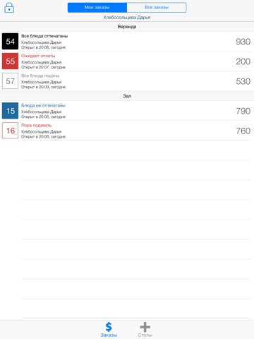 - Менеджеры могут оперативно контролировать работу зала, имея доступ к информации по всем открытым заказам.