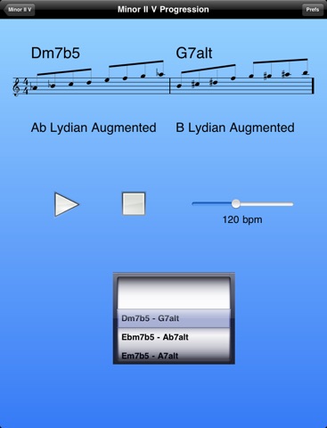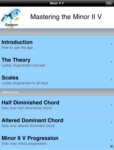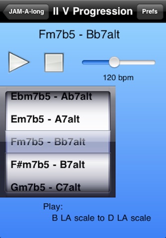 Learn a very straight forward approach as how to play over minor II Vs. You will no longer have to fear a half diminished chord followed by an altered dominant! This app will give you the tools to play these types of chords so that you sound well beyond your current years of improvisational experience. Beginners and advanced players can benefit from focusing on specific keys and progressions for Jam-A-Long. Each Jam-A-Long allows the user to select any key to improvise in over an endless loop. Tempos are also adjustable.