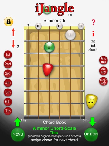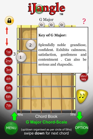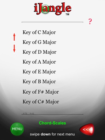 Play back and forth through the scale of any key using its main chords including, major, minor keys, naturals and sevenths.