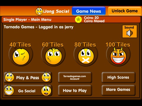 Come join the Mahjong adventure. This unique game can be played as a single player or multiplayer against your Facebook Friends, Tornado Games friends or a random opponent.